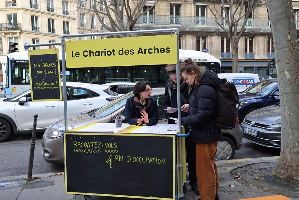 LES ARCHES CITOYENNES est un projet d’urbanisme transitoire porté par la coopérative Plateau Urbain en partenariat avec Vraiment Vraiment, Base Commune et Le Sens de la Ville pour préfigurer les usages des « Hospitalités Citoyennes » en réponse à l’appel à projet « Réinventer Paris 3 ».